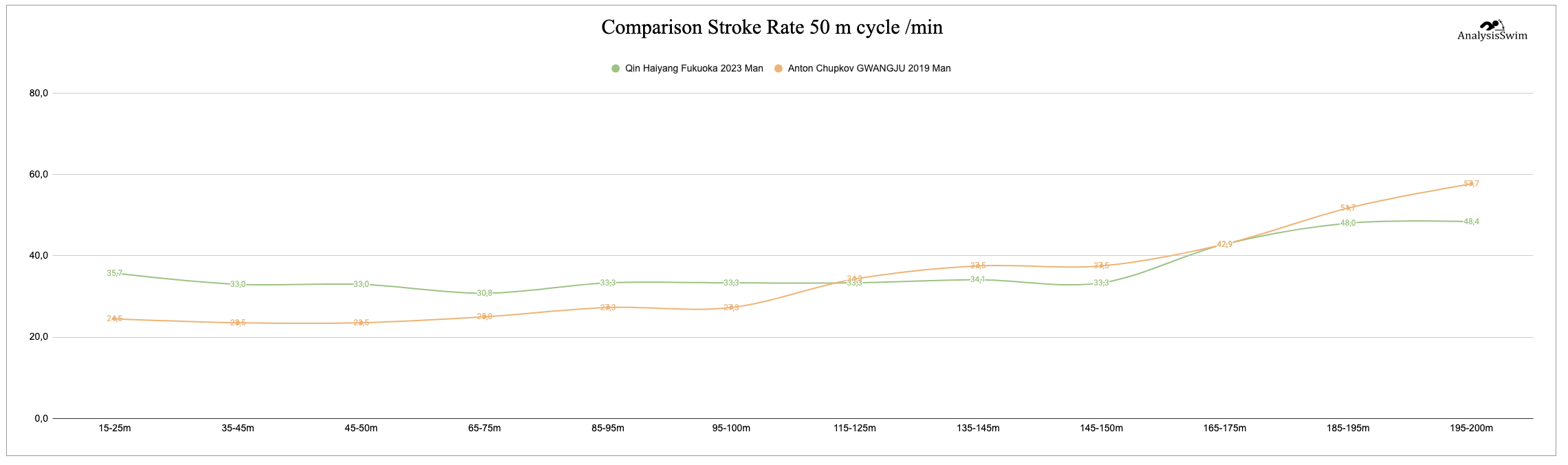 Comparison Stroke Rate 50 m сycle /min