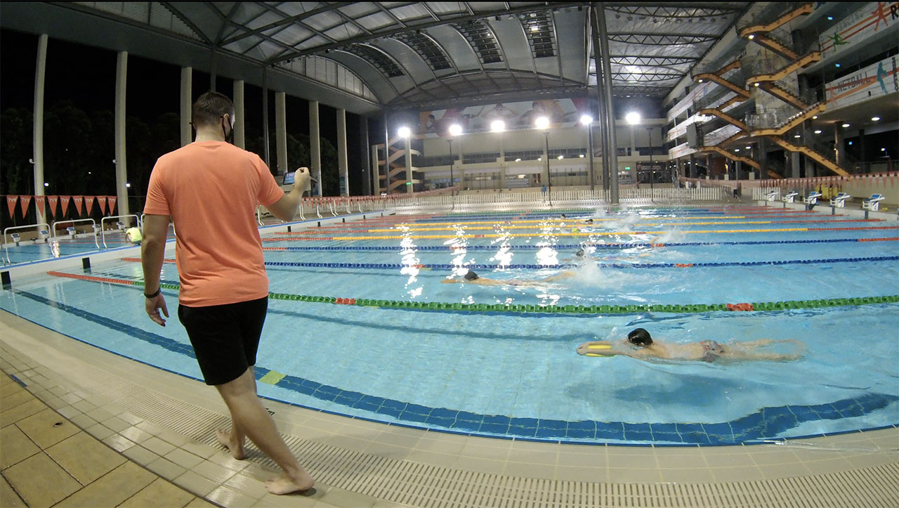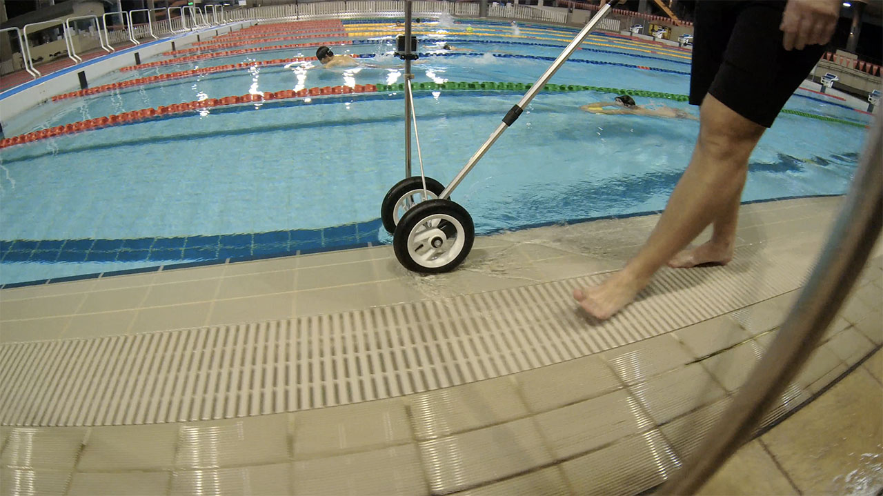 1. Set up your camera a part on the side of the pool on 1 – 1,5 meters from the start block.