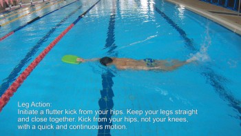Initiate a flutter kick from your hips. Keep your legs straight and close together. Kick from your hips, not your knees, with a quick and continuous motion.