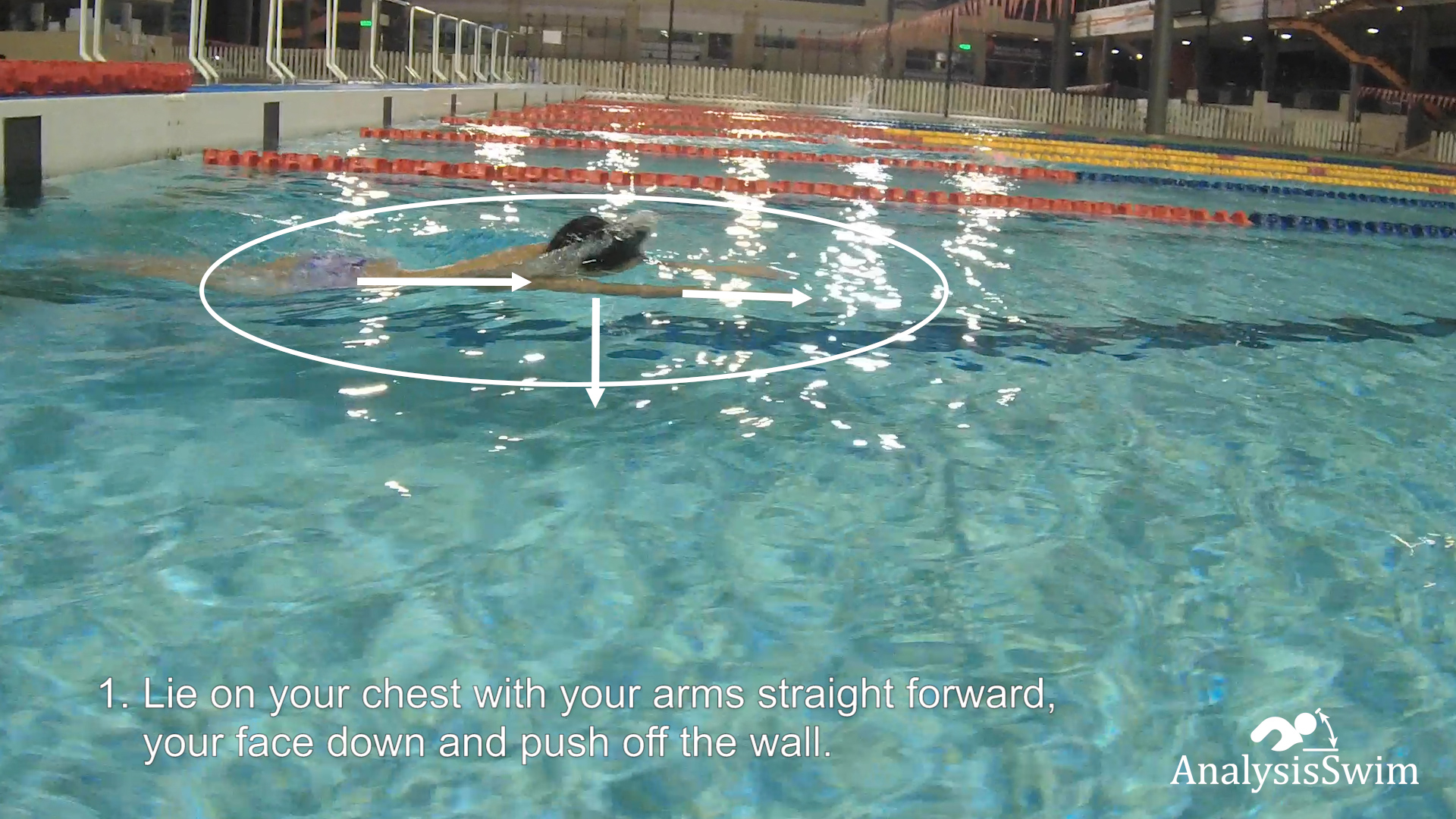 1. Lie on your chest with your arms straight forward, your face down and push off the wall.