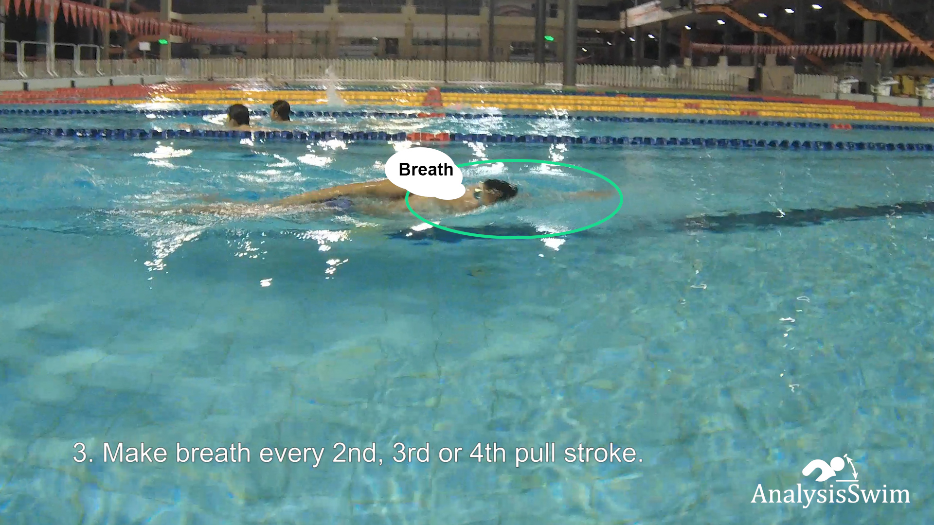3. Make breath every 2nd, 3rd or 4th pull stroke.
