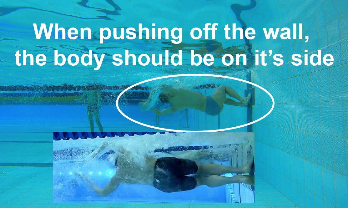 - Push-Off: After the tuck and rotation, swimmers should push off the wall with a strong leg kick, extending their body into a streamlined position. The push-off should be powerful and timed well to maximize the distance covered underwater.