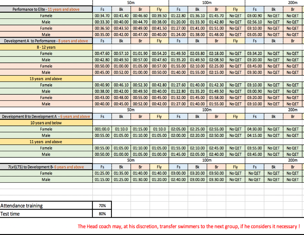 Twice a year (May and November) athletes will move from one group to the next level of the group. During the Covid-19 period may be extended time for assessment.