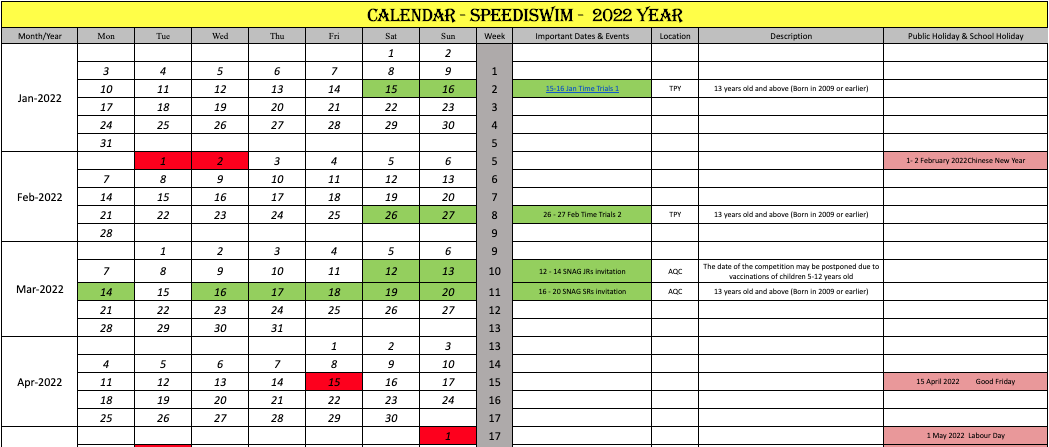 1. Competitive Swimming training (CST) Schedule and (CST) FEES Structure.Click here