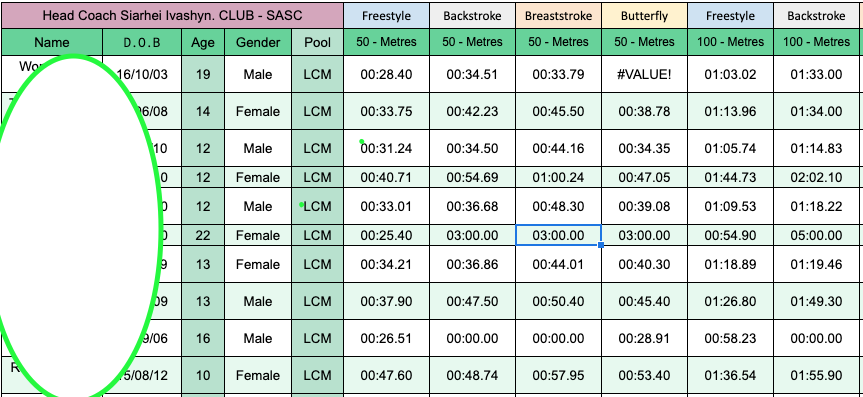 Personal best for all athletes in SpeediSwim you can check by coach link below.